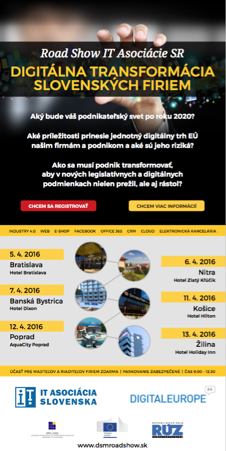 Konferencie Jednotný digitálny trh a digitálna transformácia slovenských firiem - DSM Road Show apríl 2016