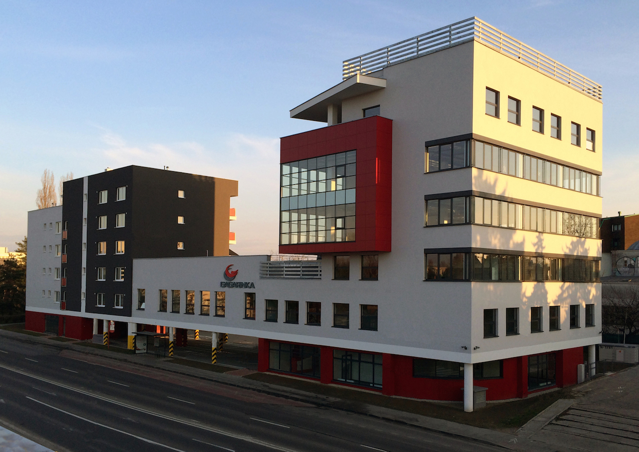 Napriek limitovanému pozemku komunikáciou Gagarinova ulica a kanalizačným zberačom .sa podarilo navrhnúť a realizovať stavbu, ktorá v sebe spája tri funkcie - administratívu, kultúrne aktivity galériou umenia a moderného bývania. Vznikol tak projekt, v ktorom je výrazné hmotové členenie administratívnej časti z uličných pohľadov upokojeného severnou fasádou bytovej časti, ktorá je naopak dominantná v členení zo strany vnútrobloku. Administratívna časť má 7 NP, bytová časť 6 NP. Na 1. PP je garáž s 35 parkovacími miestami, na teréne je ich 25. Počet bytov je 17, a to dvo- troj- a päťizbových. Priestory administratívy vytvárajú samostatné celky, na jednotlivých podlažiach sú čitateľné aj na fasáde predsadeným preskleným kubusom a pásovými oknami. Veľkoryso koncipovaný priestor galérie umenia je možné variabilne členiť posuvnými panelmi podľa koncepcie jednotlivých expozícií a podujatí. Moderné riešenie bývania s prevažne dvojizbovými bytmi plní funkciu pohodlného moderného bývania s veľkými lodžiami, orientovanými na južnú stranu a do vnútrobloku. Strešná záhrada nad 2. NP s plochou 374,75 m2 je oázou zelene a oddychu v nadväznosti na administratívne priestory a umožňuje aj letnú exteriérovú expozíciu galérie. Do celej budovy je bezbariérový prístupom do všetkých jej častí. Stavebno-konštrukčné riešenie – budova polyfunkčného domu je rozdelená do dvoch dilatačných celkov. Zvislé nosné konštrukcie - železobetónové, monolitické steny s otvormi a železobetónové, monolitické stĺpy. Murované steny sú nenosné, len deliace. Vodorovné nosné konštrukcie a schodiská sú železobetónové, monolitické. Exteriér je zateplený minerálnou vlnou ako kontaktný zatepľovací systém alebo prevetrávaná fasáda s obkladom z kompaktných fasádnych dosák v parteri a na presklenom kubuse administratívnej časti. Tieto dosky sú použité aj ako výplne balkónov a loggií. Vykurovanie - teplovodnou plynovou kotolňou umiestnenou v suteréne budovy. Polyfunkčný dom GAGARINKA vznikol úzkou súčinnosťou architektov a projektantov architektonického a stavebno-technického riešenia dotiahnutím do všetkých detailov a kvalitnou stavebnou realizáciou hlavným zhotoviteľom